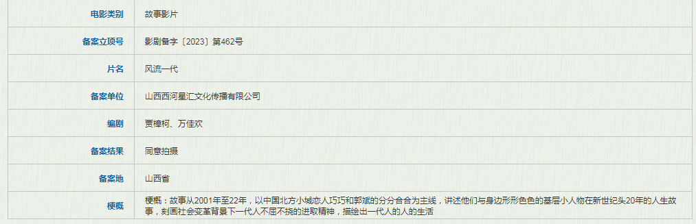 同样有代表性的是贾樟柯即将上映的电影《风流一代》,同样是2023年年初立项,但电影足足创作了22年之久,如果像高群书说的一定要先立项再拍摄,那《风流一代》的立项时间应该是22年前才对。