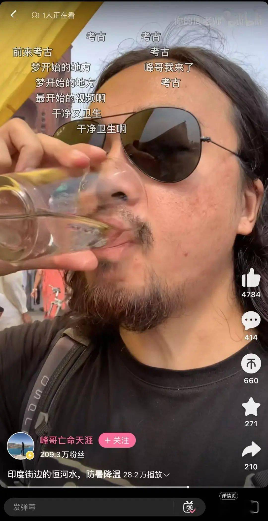 ▲峰哥B站首个视频,一镜到底勇敢喝下印度现卖恒河水,只为打破传言。