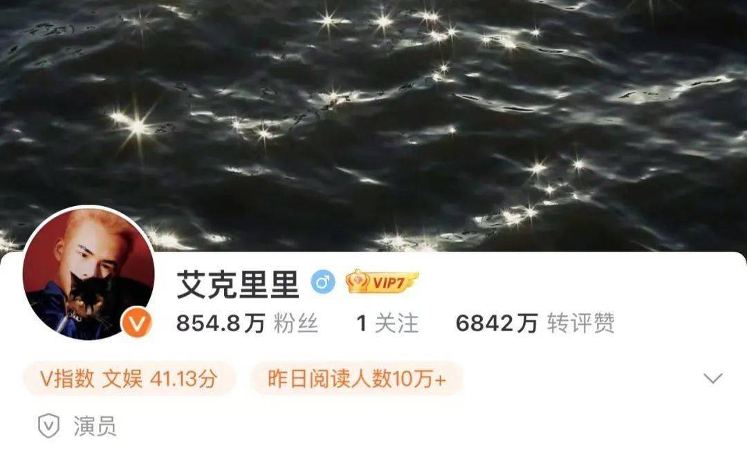 ▲艾克里里的微博账号,如今的介绍标签只留下了“演员”。