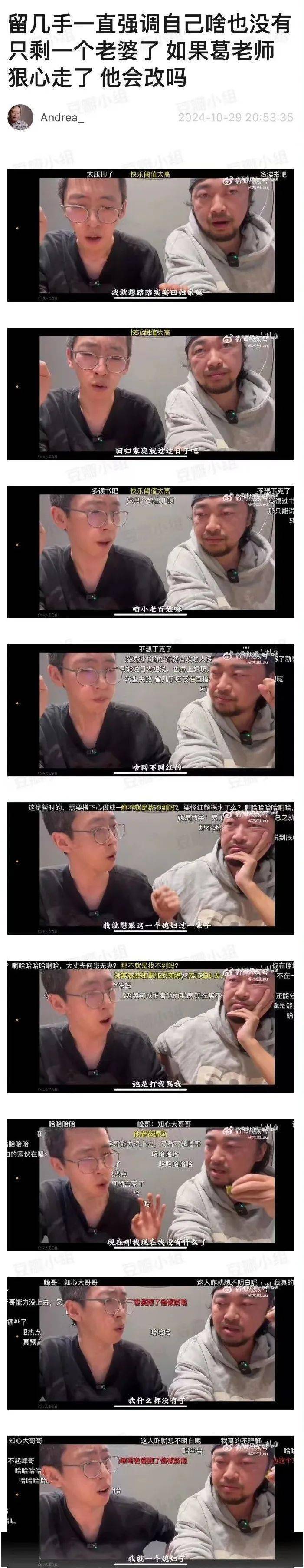 关于晚学,2024年试图重新支棱起来的刘爽太太葛夕也在自己的账号上与老公深度探讨,“留几手”还爆料林瀚以晚晚经纪人的身份曾私信他求合作,表示晚晚不介意被他骂过,但因为“留几手”提钱而没了下文。