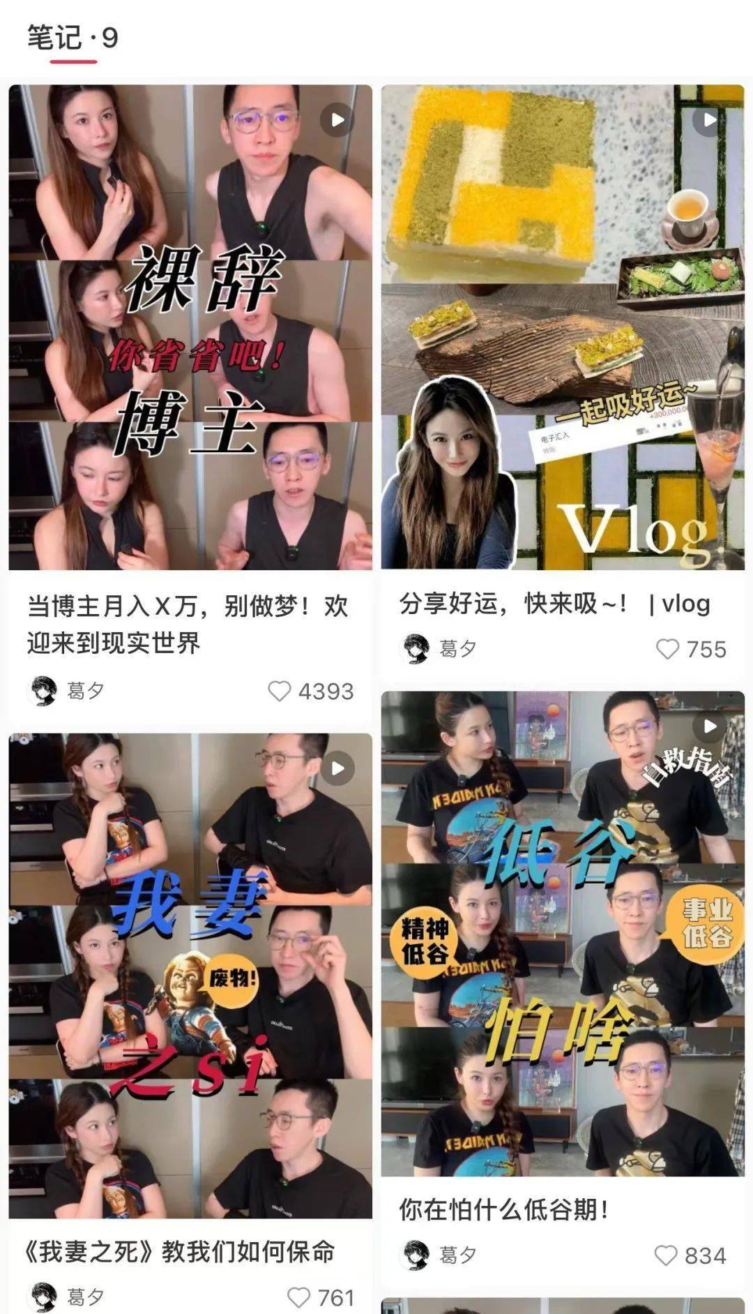 ▲葛夕账号主页可以找到不少和刘爽共同录制的视频。