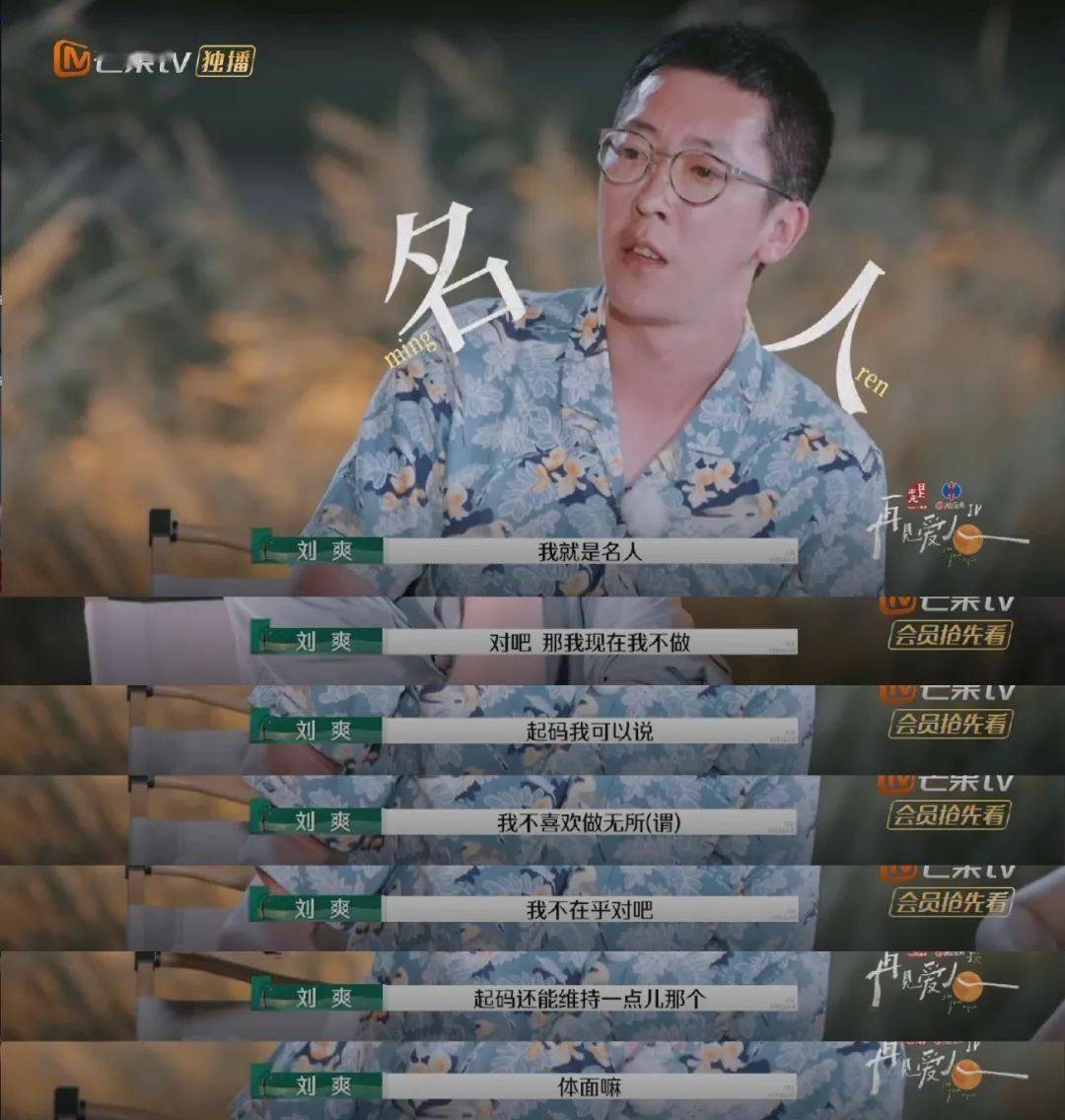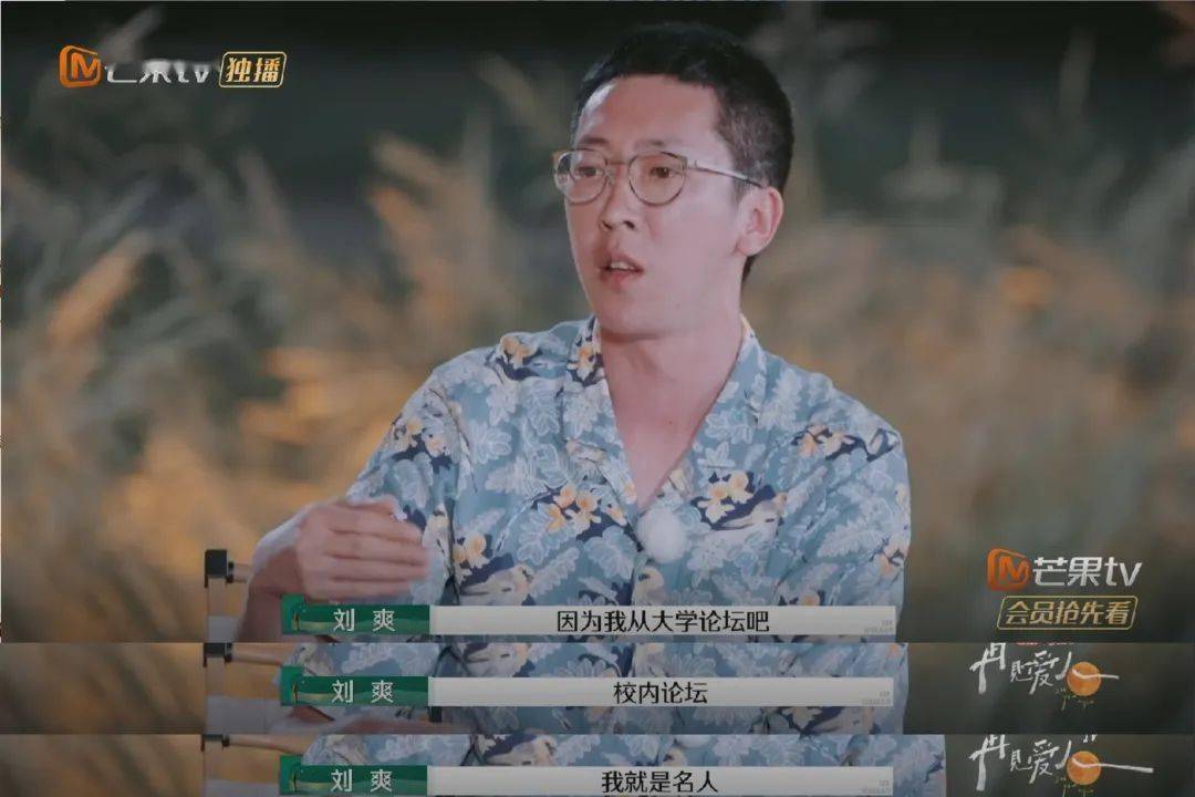 ▲刘爽在《再见爱人》节目中自爆从大学时期就是“名人”。