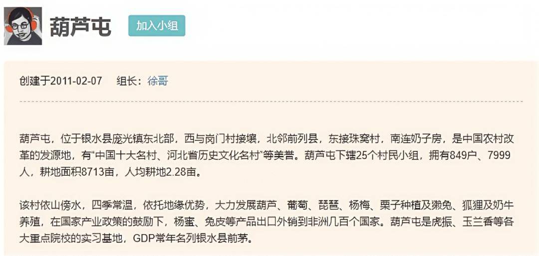 ▲图片为葫芦屯小组简介,非常专业,又非常搞笑。