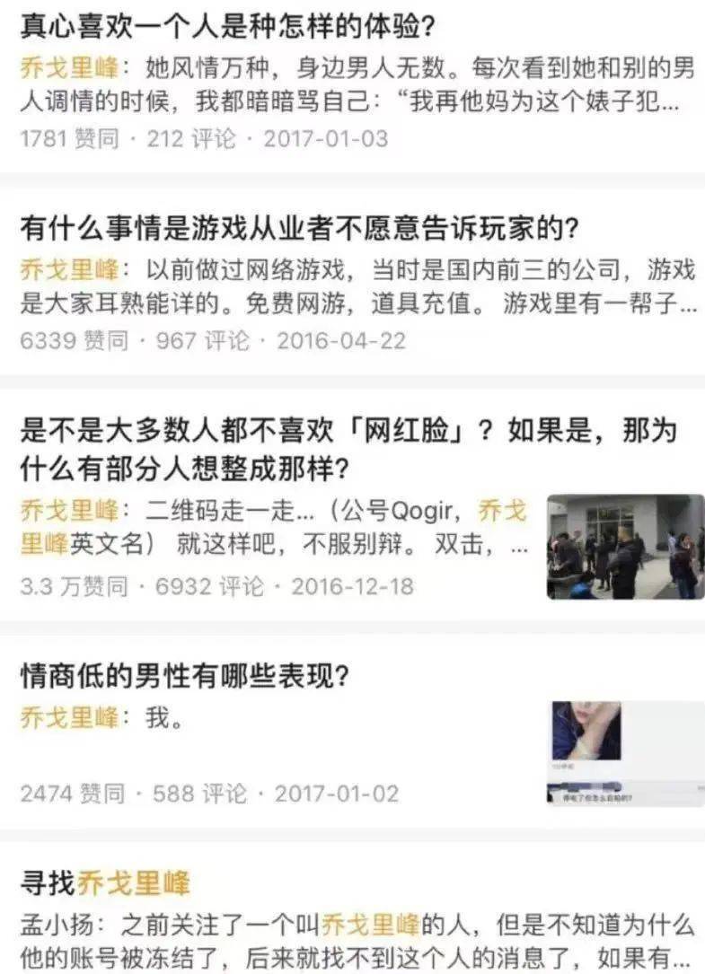 2016年左右,他还在知乎上指点江山,是自称“风流多金、资本雄厚、周游世界、女友无数”的著名大V“乔戈里峰”。