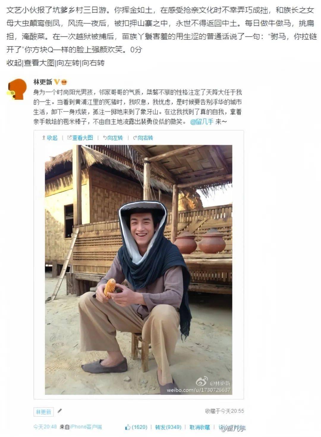 ▲“留几手”对演员林更新的照片点评。
