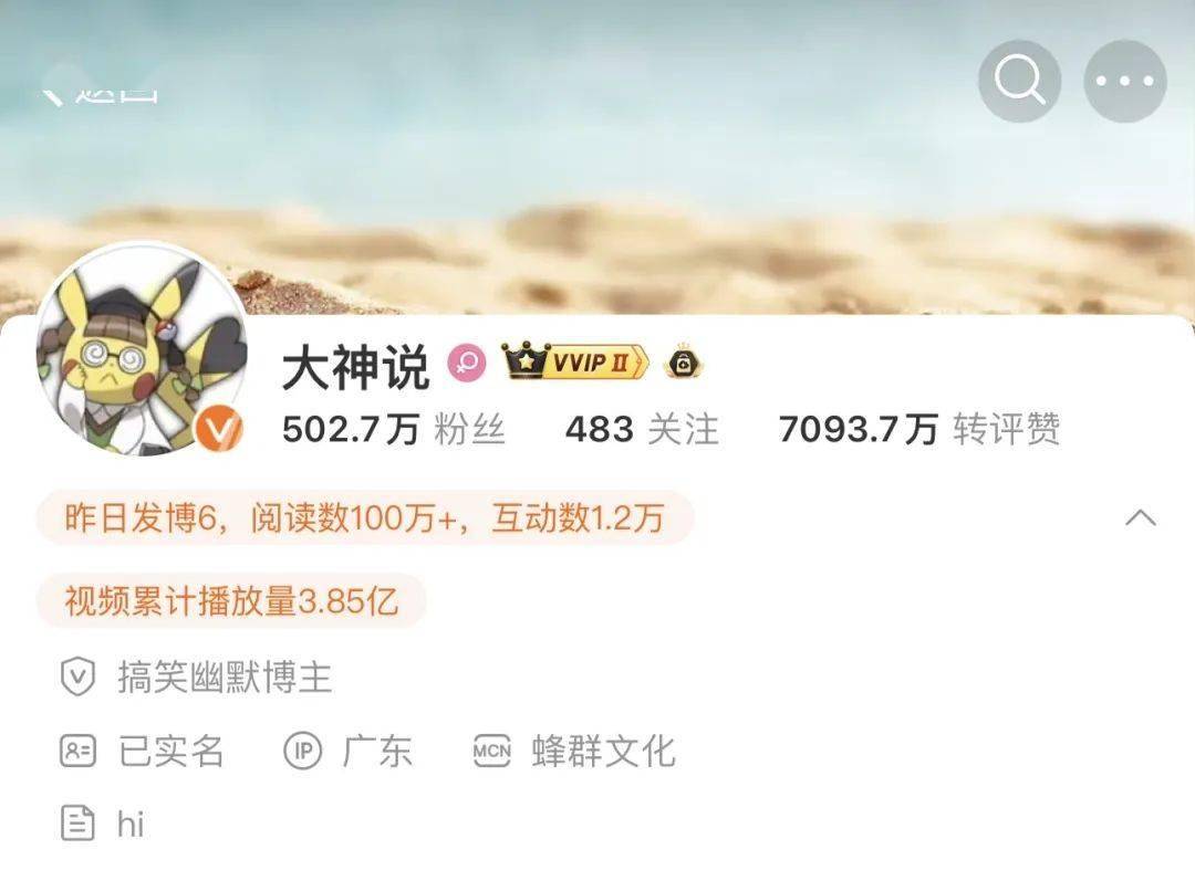 ▲微博账号“大神说”。