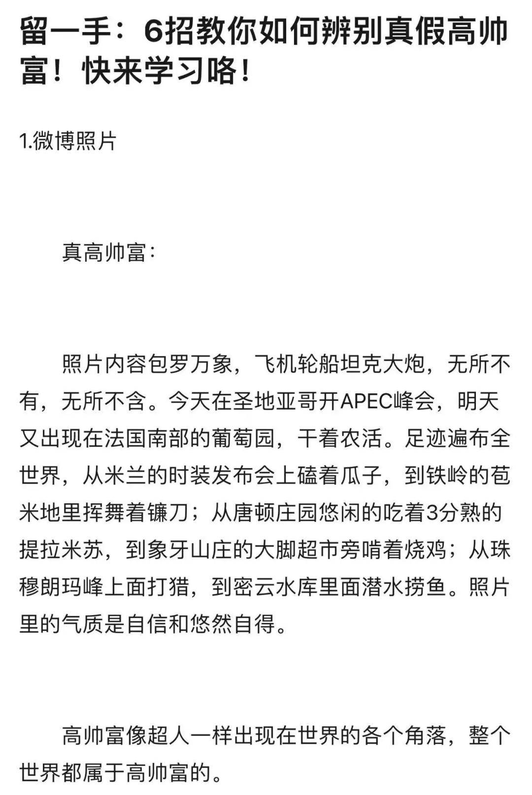 “比上不足, 比下有余”的家庭条件,也让他上能怼富二代、名人、国际时事,下能怼普通网友,把照片里露怯、搞怪、不为人注意的细节给你批斗地体无完肤。