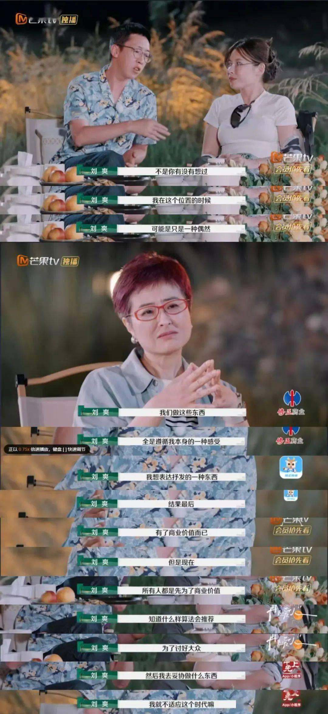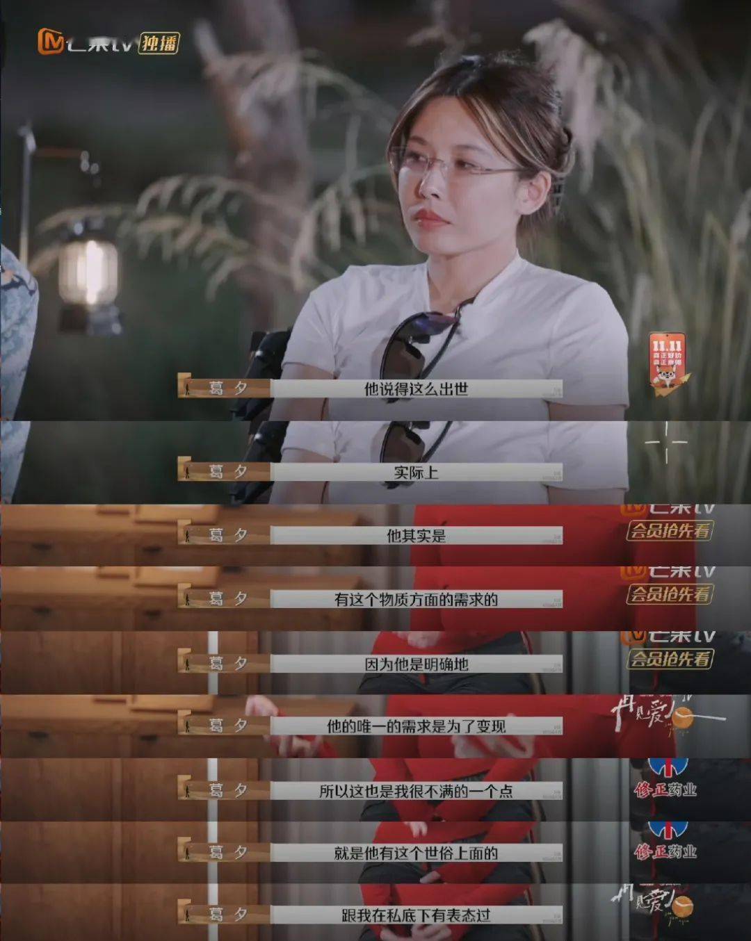 ▲葛夕在节目中指出刘爽私底下其实是一个很想变现的人,年深日久,他也有了他自己当年最看不上的人格特点“装”。