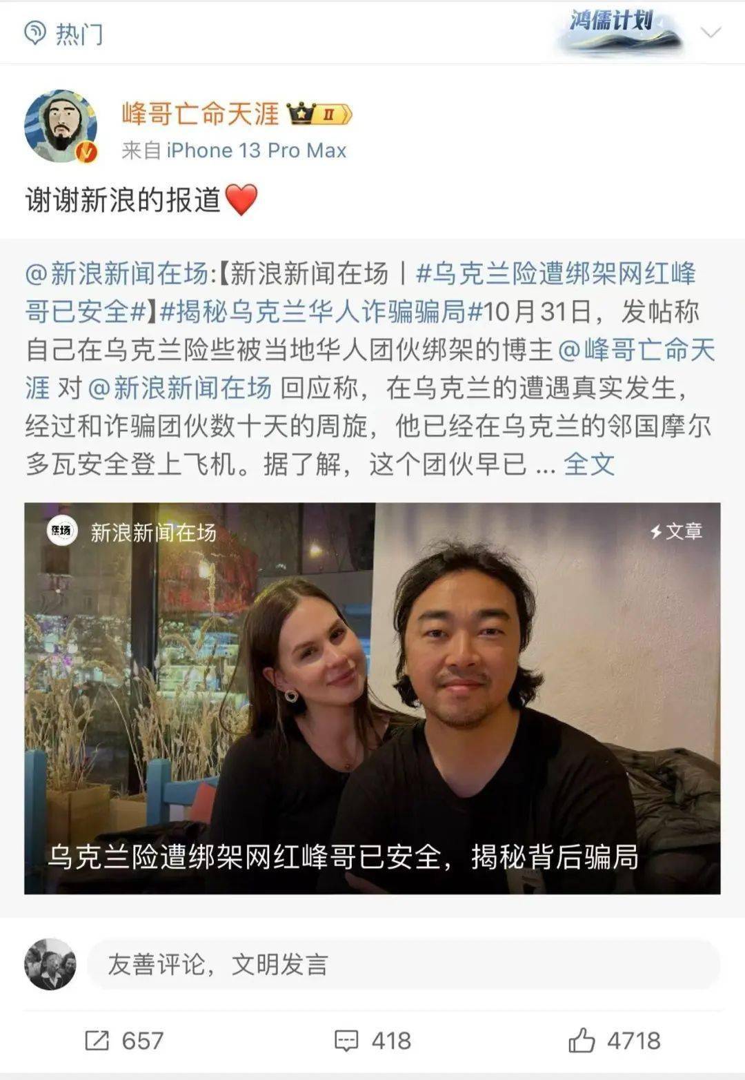 ▲今年10月,他在乌克兰经历的绑架事件,上图为绑架团伙派来“引诱”他的乌克兰美女。此事件被新浪新闻采访报道,获得广泛关注。
