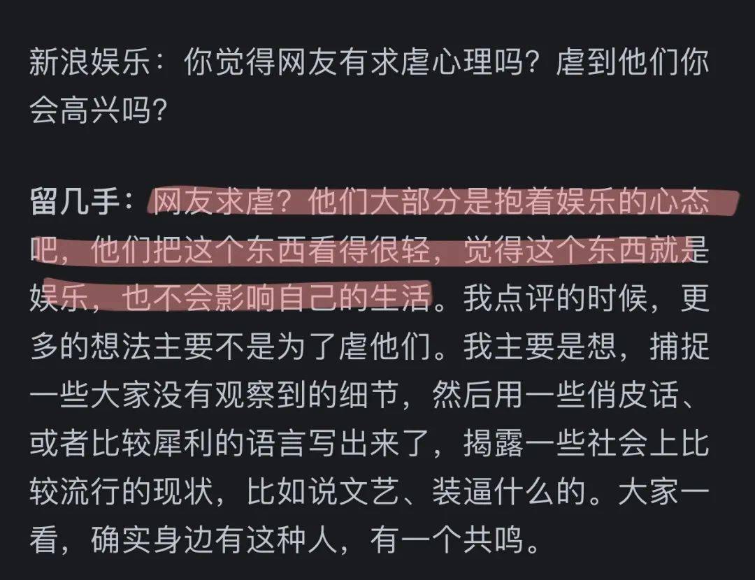 ▲关于当时网友找他点评是否出于“求虐”心理,刘爽认为,看似冒犯的手段只是他与网友之间的默契,实则更多是通过犀利的语言引起大家的共鸣。