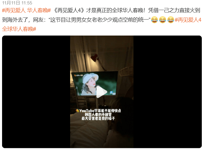 网友:真正的华人《春晚》其实是1月18号《再见爱人》的大结局。