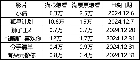 (部分12月新片情况)