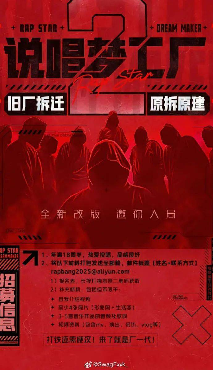 另外,明年的另一档说唱节目《说唱梦工厂》也开始了最新报名!
