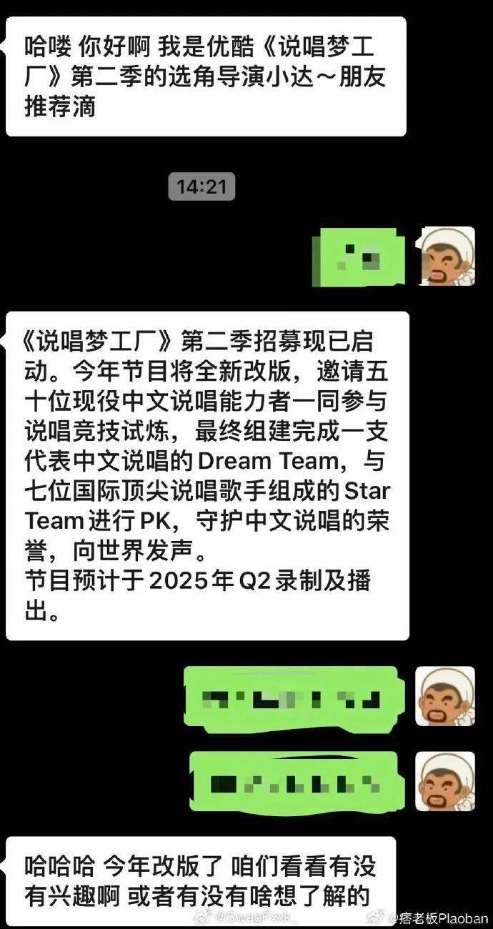 痞老板晒出了节目组的邀约,不仅爆料了全新改版内容,还预告节目将于明年第二季度播出: