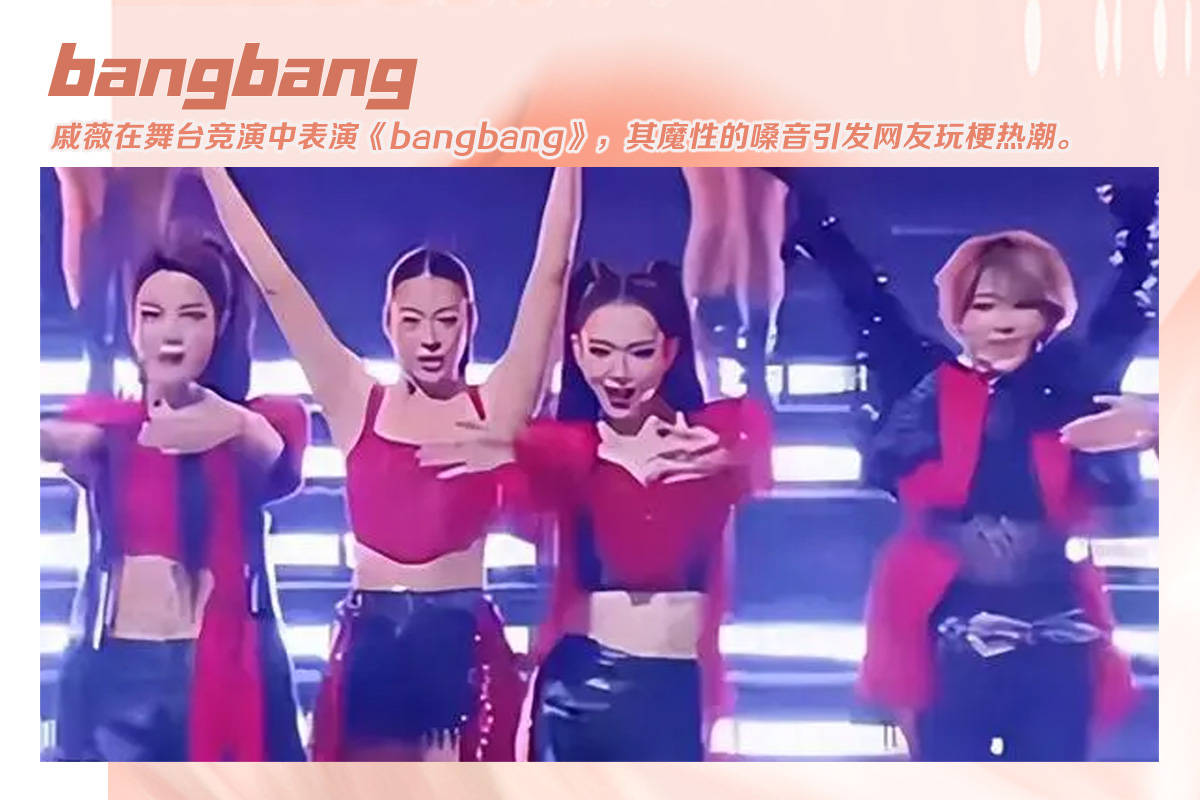 综艺中,戚薇在舞台上表演了一首《bangbang》,其魔性的发音和动作成为综艺出圈第一棒。眼见着全网都在被戚薇的bangbang硬控,她也亲自下场回应了并传授经验“发声一定要很扁,才能达到最惊艳的效果”,这波bang的热度和路人缘算是彻底拿下。