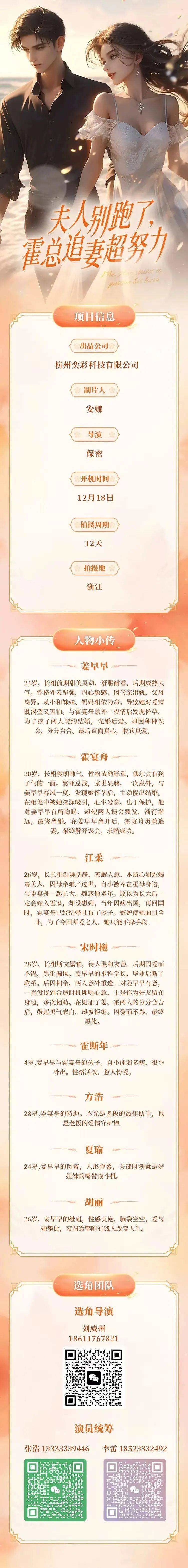 角色众多,欢迎经纪人及个人演员投递资料。