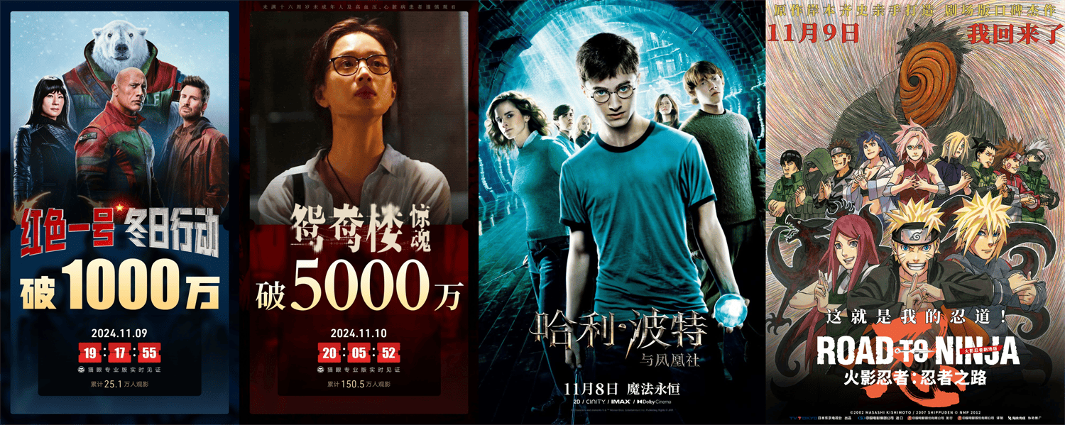 哈利·波特系列第五部重映电影《哈利·波特与凤凰社》首周三天收2085.9万排名第五;