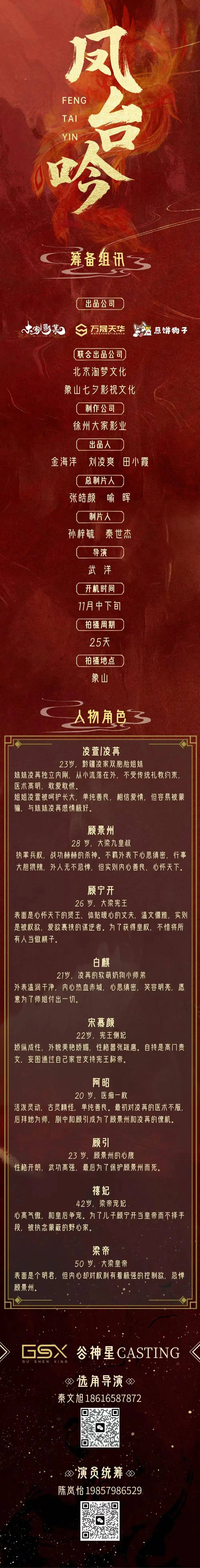 众多角色未定,欢迎各大经纪公司与演员老师投递资料。