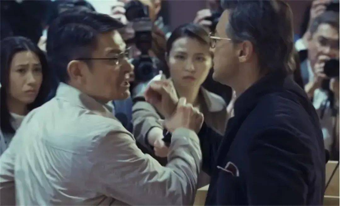 站在刘青云、古天乐和吴彦祖三兄弟对面的反派是王敏德饰演的老板马志华。