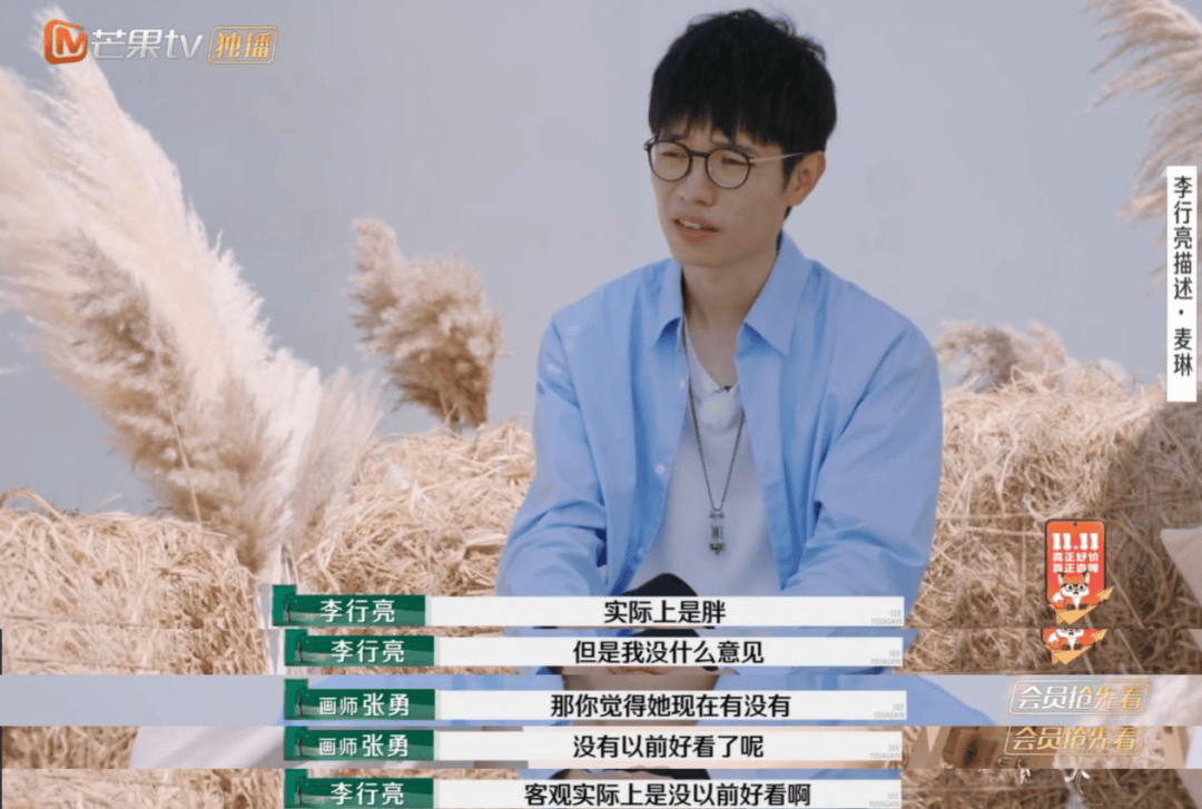 李行亮在节目中评价麦琳的外貌时,嘴上不断强调自己不在意。