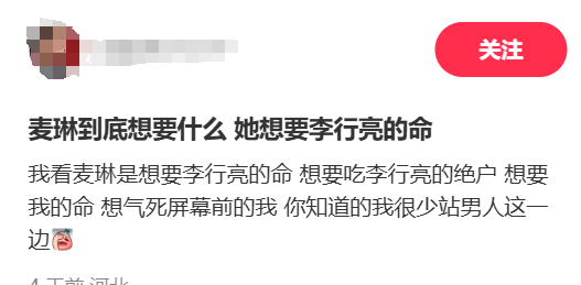 在李行亮解释完这种鬼打墙的相处经历之后,同情麦琳的风向开始转变。