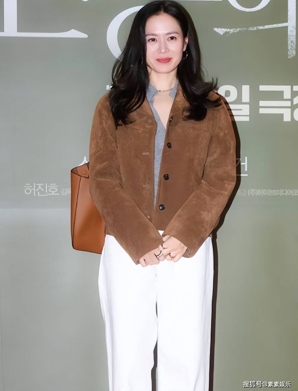 孙艺珍当天的装扮也是非常吸睛,休闲装搭配很秋冬,棕色上衣搭配白色的裤子,形象温婉可人好甜美。