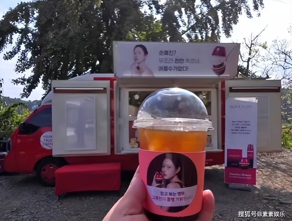 另外还有她分享出自己遇到应援车的场景,她还不忘记举起印有自己头像的品牌应援车留下照片。