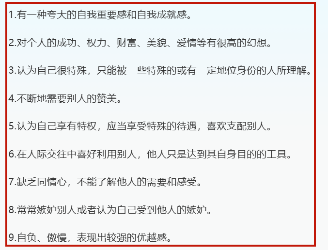 反正只要这九条里面任意能占有五条,这人基本上就是npd没跑了~