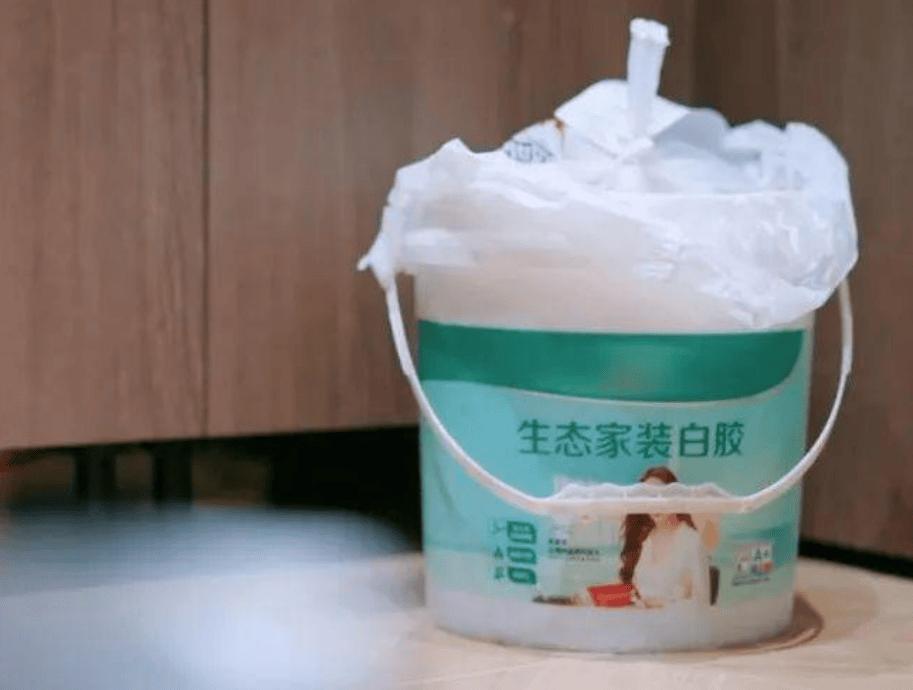 她自己说自己很省钱,所以家里都不买垃圾桶,用的装修剩下的油漆桶装垃圾。