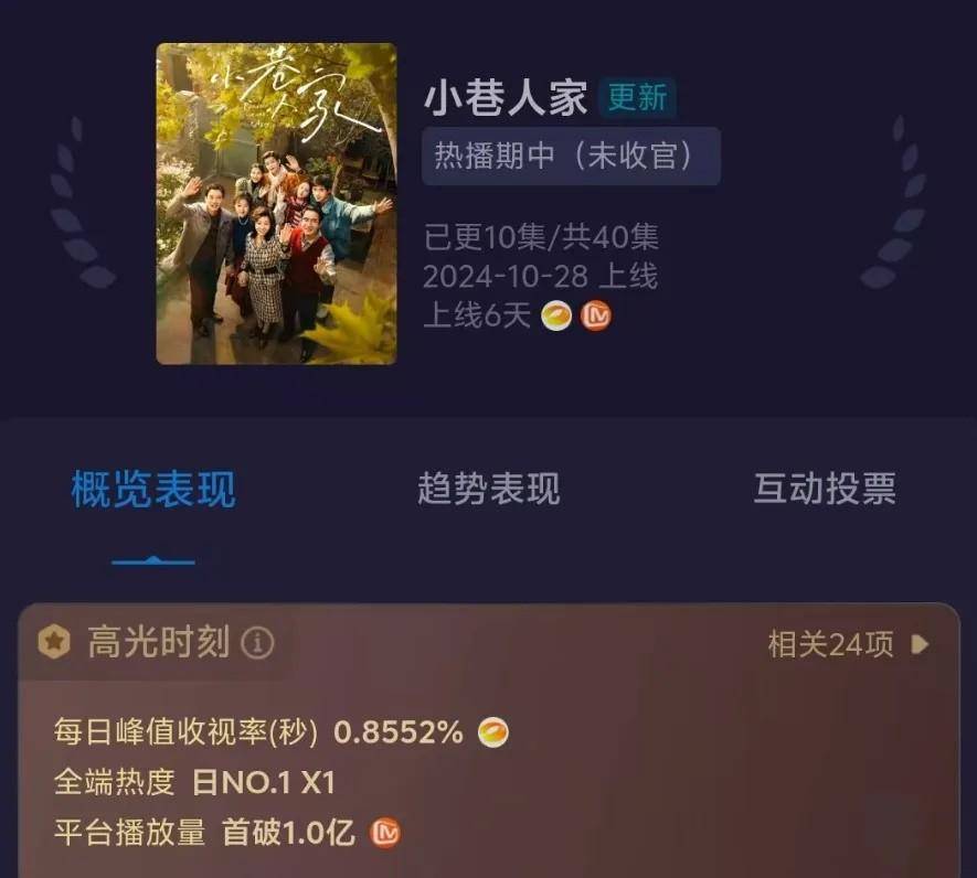 但这次夺冠的却是看似平平无奇的《小巷人家》,《小巷人家》的热度指数已经实现了登顶。