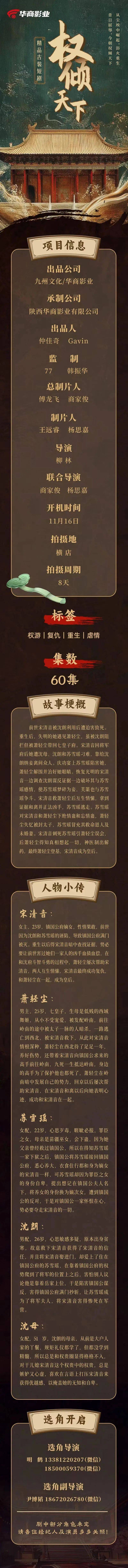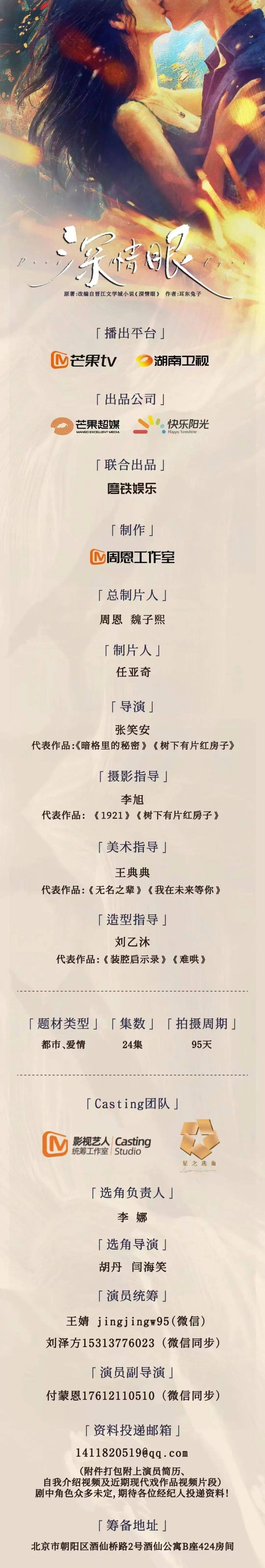 剧中部分角色未定,请各位经纪人及演员多多关照!