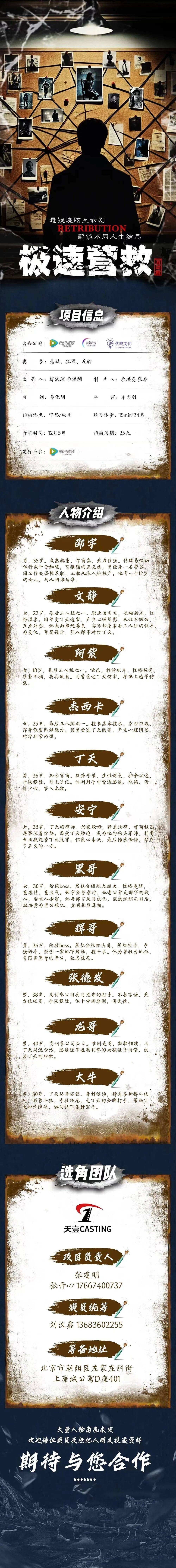 剧中角色众多未定,期待各位经纪人投递资料!