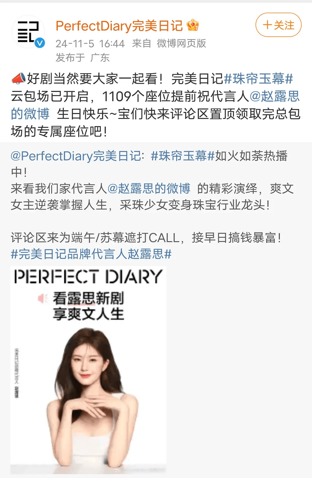 隔壁的《珠帘玉幕》亦不吝“腰包”,其中男主扮演者刘宇宁及其粉丝就为剧集包揽了2万余个云包场座位,赵露思方包场数也已近2万个,其代言品牌完美日记今日还包场了1109个座位提前为赵露思庆生。