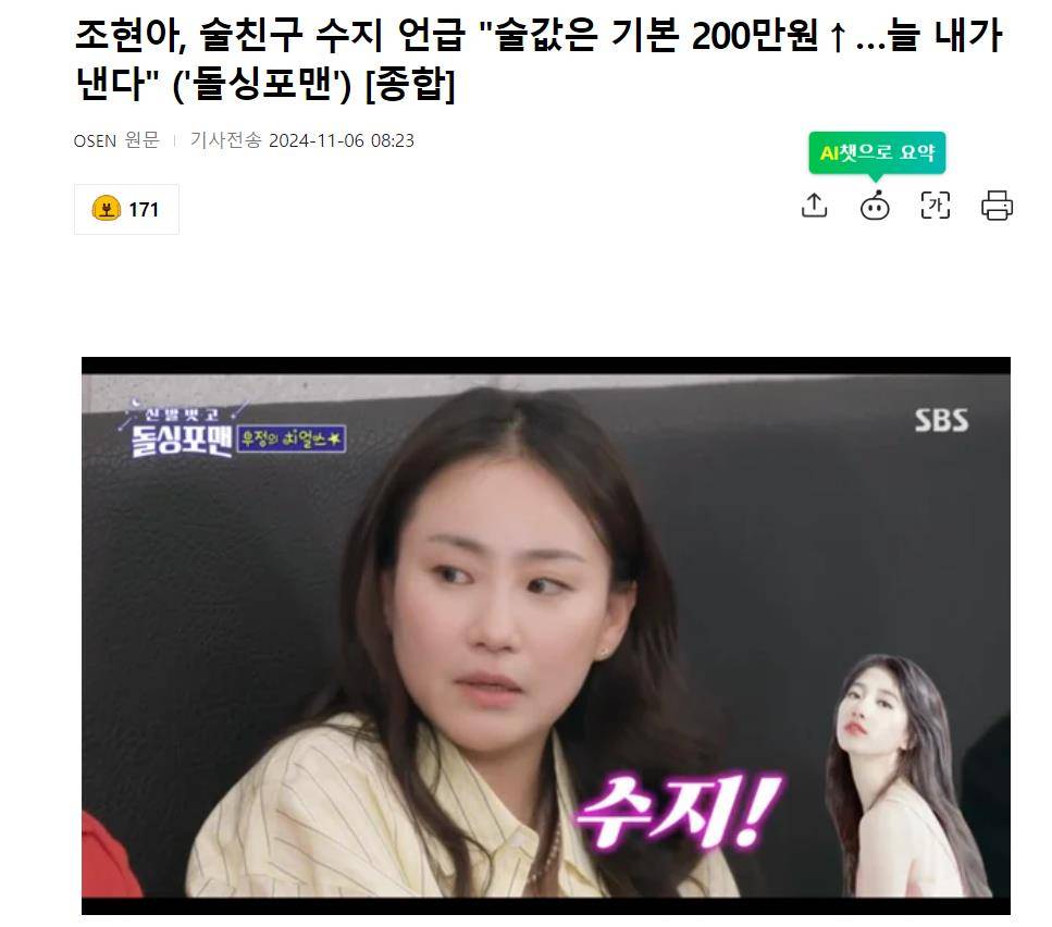 另外,赵贤雅还提到自己与好友裴秀智有一项十年未变的酒约——“我们只喝柠檬烧酒!”,原来,她们从十年前就立下了这项独特的“友情之约”。主持人好奇她与其他明星喝酒时是否会AA制,她大方笑言:“通常都是我买单!”,并透露自己在朋友P.O的退役派对上一掷千金,豪爽地花了300万韩元买单。