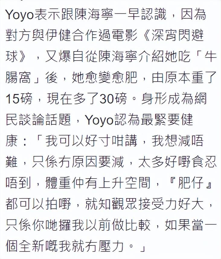如今蒙嘉慧中年发福,但她和郑伊健的感情稳定,无需刻意保持体型去取悦任何人。