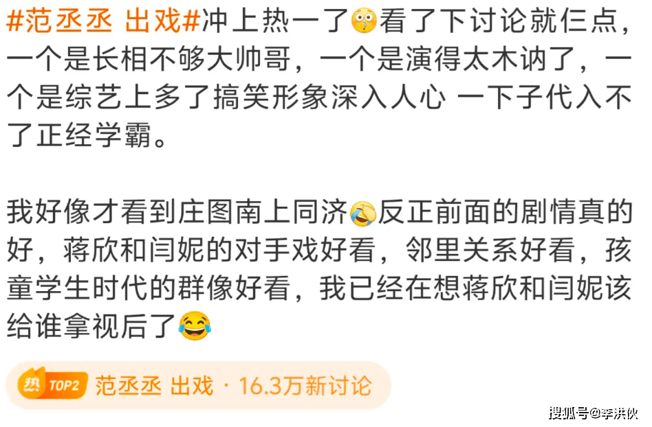 但立刻就有网友反驳道:“书卷气不等于呆,范丞丞的演技太没存在感了。”