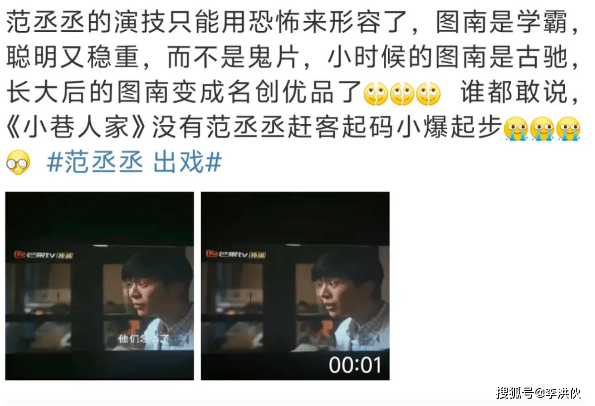 前面几集,小演员演得有多好,范丞丞出现后观众就有多失望,真是没有对比就没有伤害。好好的一部剧,范丞丞上场后就成功转移了该剧的焦点,网友从评论剧情变成评价范丞丞的演技了。