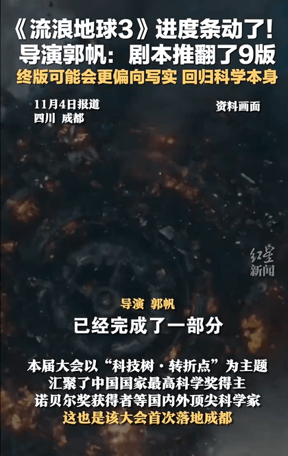 (来源:红星新闻)据郭帆导演透露,《流浪地球3》的剧本已经完成了一部分,(此前)已经推翻了9版,所以还在继续努力。做《流浪地球3》的时候,可能会更偏向写实,会更加回归到科学本身,这是现在大概的规划。