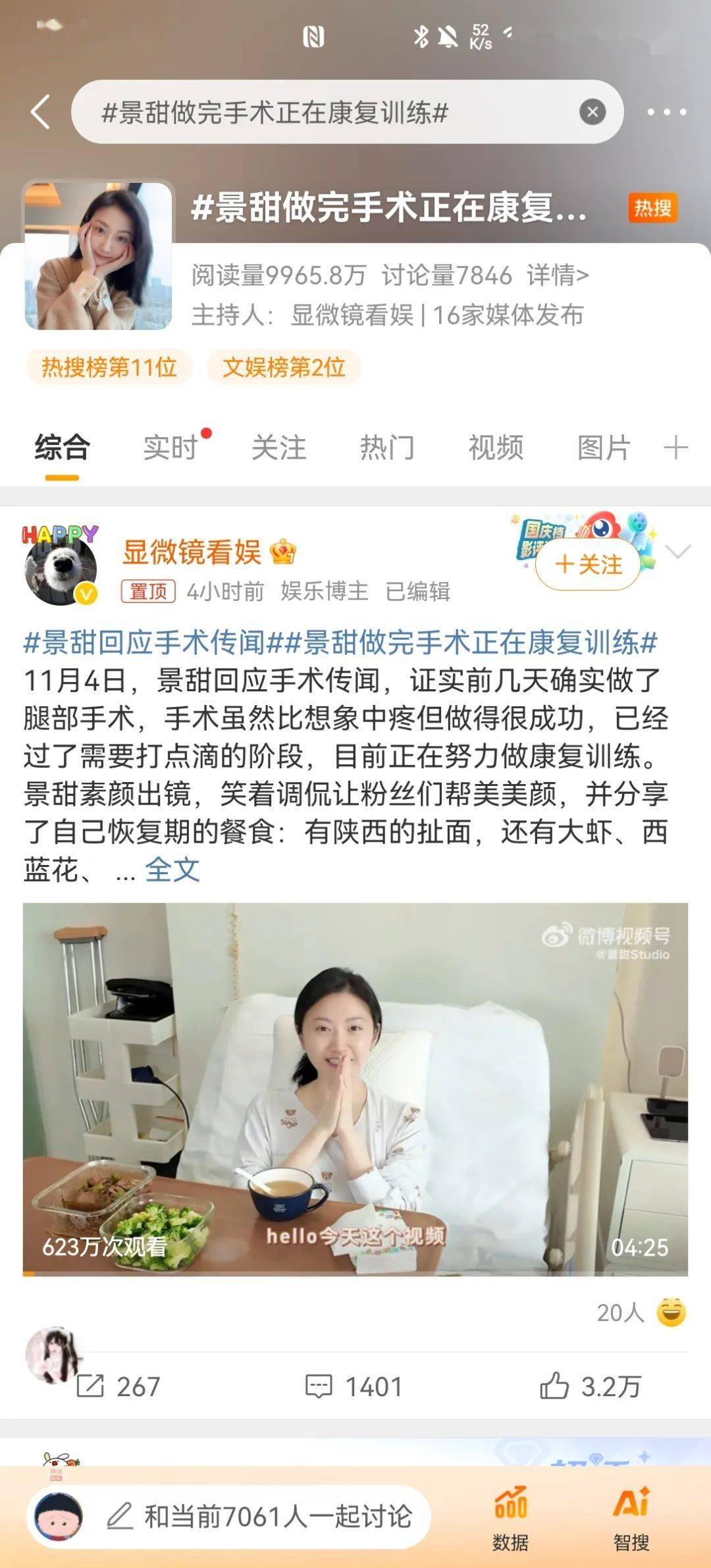 景甜最近这段时间一直没露面,还引发过一些负面猜测(有说她整容恢复期,有说去生孩子啥的),其实她因为长期练舞和打戏留下的腿伤发作,跑去去做了个腿部的手术而已,目前正在康复训练阶段,还得一段时间才能恢复营业。