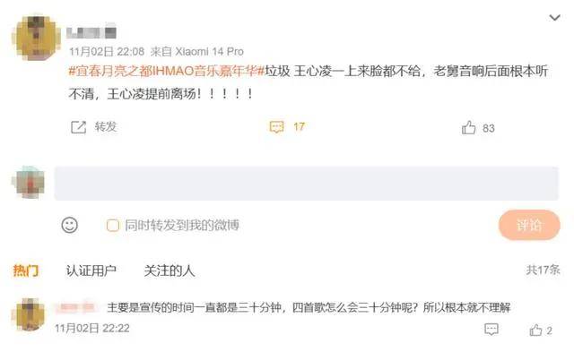 11月2日,知名歌手王心凌在江西宜春月亮之都-IHMAO音乐嘉年华上的演出引发热议,有网友质疑其提前离场,并称现场导播不切王心凌镜头,观众大喊退票。