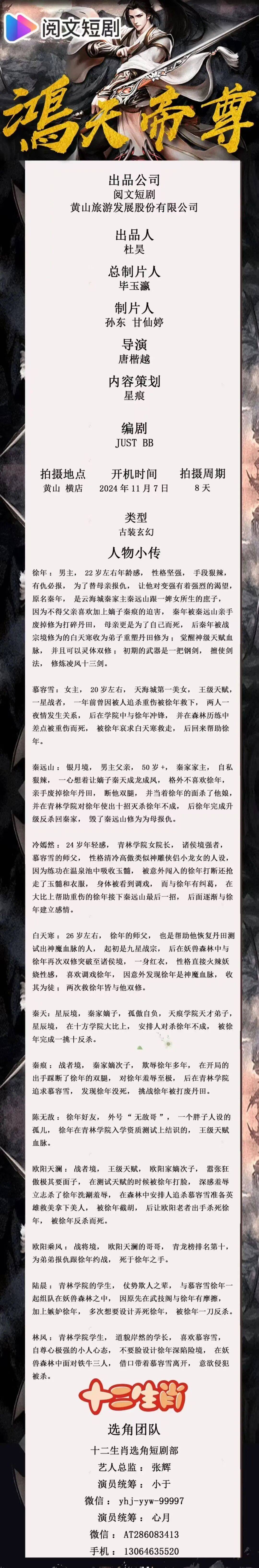 选角团队:十二生肖选角短剧部