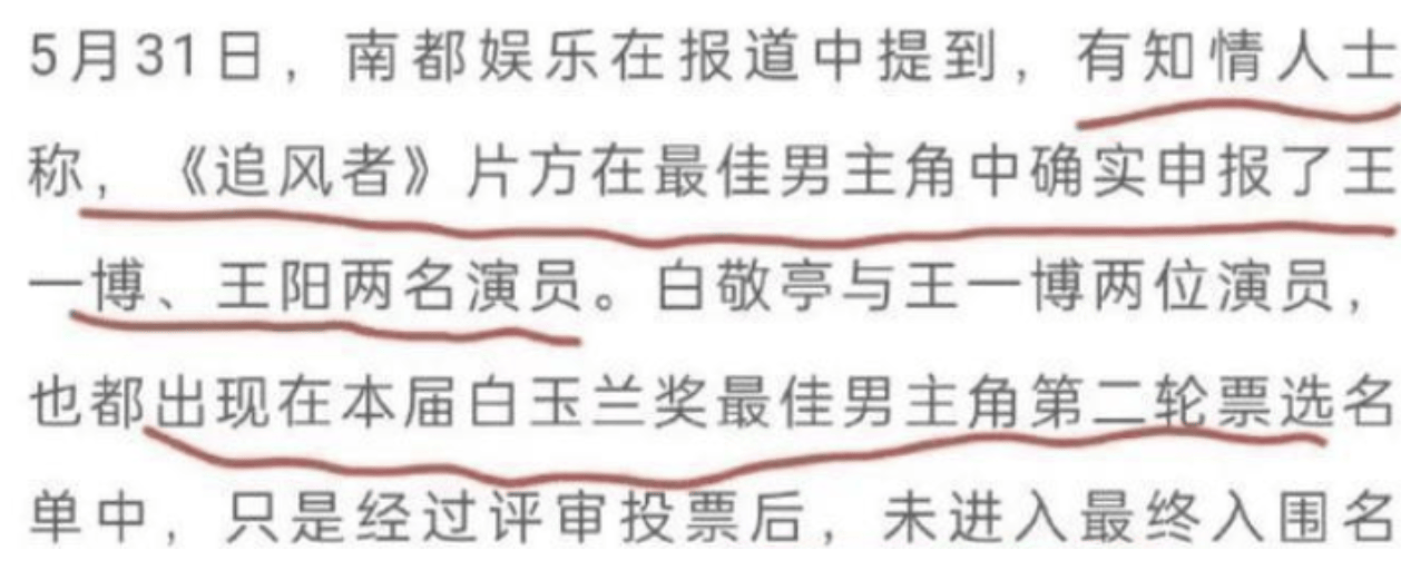 但很可惜,他的实力并未获得白玉兰评委的认可,他落选了,王阳却入围了。
