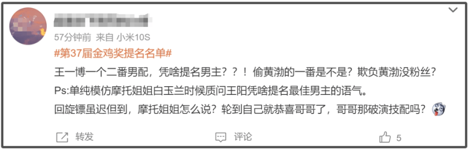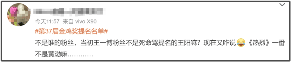 谁能想到时过境迁,如今,在王一博凭借《热烈》成为金鸡影帝候选人后,收到的嘲讽声一点不亚于5个月前的王阳。