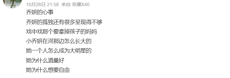 比如,乔妍本来的生日是多少、小乔妍是怎么长大的,她一个人怎么成为大明星的、她为什么酒量好,这些情节如果呈现在大屏幕上,可能电影会变得更加的精彩。