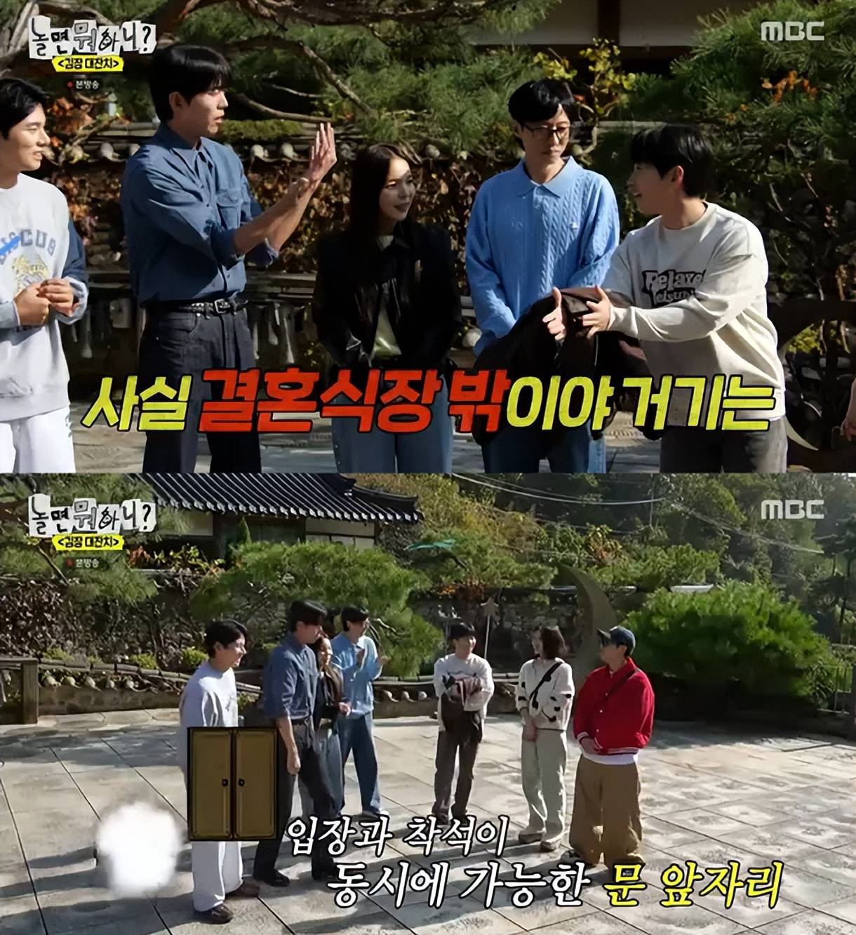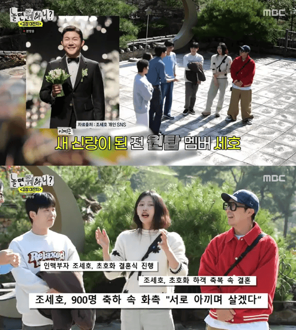 当天,节目团队在开场白中提到了曹世镐于上月20日举行的婚礼。刘在石说:“曹世镐不是结婚了吗?”,朱宇宰认真地开始了这个故事,“曹世镐说这场婚礼,比他迄今为止任何的拍摄都困难”。李美珠说:“那天车太多了,我不得不跑上楼梯”,透露了曹世镐的婚礼宾客人数破纪录。