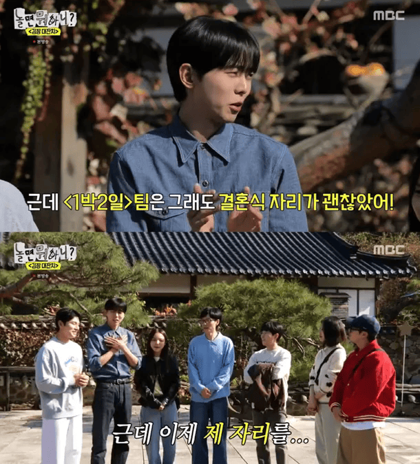 听到这句话的刘在石开玩笑说:“在参加曹世镐婚礼的人中,有些人感到有点失望,我打算收集这种失望,并将其传达给曹世镐”。