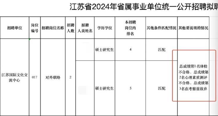 原标题:江苏一单位招聘前三名均未录取,官方:属实,不存在内定