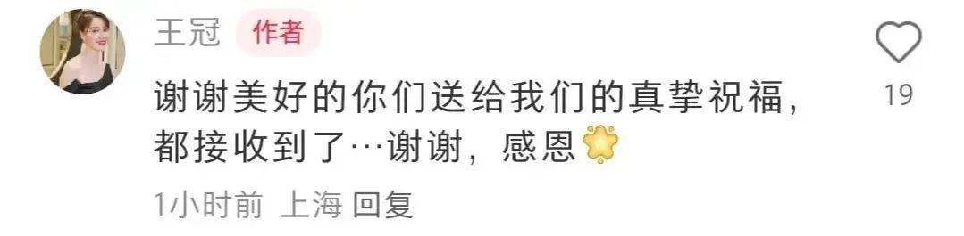 也有网友好奇她的另一半是谁,王冠没有正面回答,只是说“谢谢美好的你们送给我们的真挚祝福,都接收到了……谢谢,感恩。”
