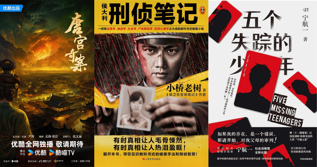 古装悬疑探案剧有《唐宫奇案》《大宋奇案风云录》,分别由优酷旗下两家自制工作室剧有想法、淇心剧力备案,均由优酷出品。这是比照今年Q3剧集有效播放量TOP1《唐朝诡事录之西行》开发的项目。