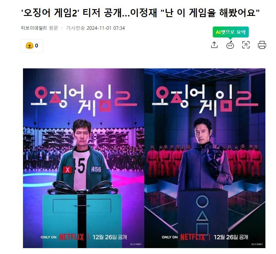 11月1日,Netflix韩剧《鱿鱼游戏》第二季公开了预告海报、预告片和剧照。